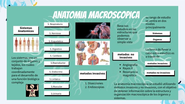 La anatomía macroscópica se estudió utilizando métodos invasivos y no invasivos, con el objetivo de obtener información sobre la estructura y organización macroscópica de los órganos y sistemas.