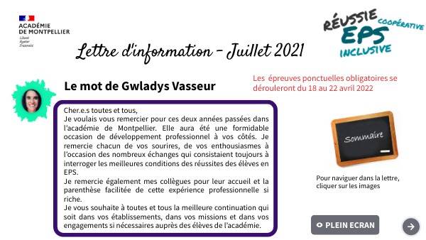 Lettre info EPS Académie de Montpellier Juin 2021