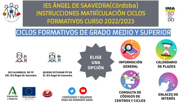 IES ÁNGEL DE SAAVEDRA(Córdoba) INSTRUCCIONES MATRÍCULACIÓN CICLOS FORMATIVOS CURSO 2022/2023