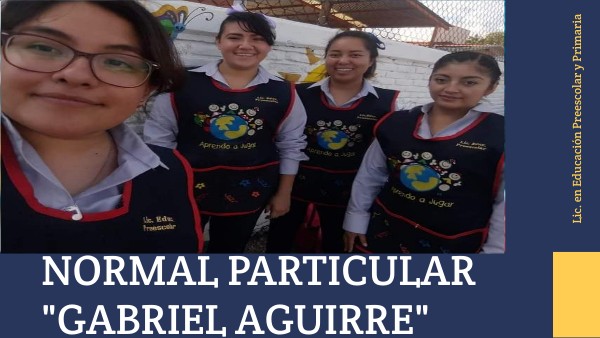 ESCUELA NORMAL PARTICULAR "GABRIEL AGUIRRE" LICENCIATURA EN EDUCACIÓN PRIMARIA Y PREESCOLAR. Aquiles Cerdan #826 Barrio de Santiago Tel: 8-12-22-46 C.P. 78046 San Luis Potosí normalga.ofertaeducativa@gmail.com