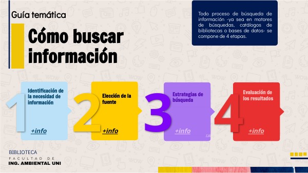 - Revisas guías temáticas para encontrar información puntual sobre fuentes recomendadas.