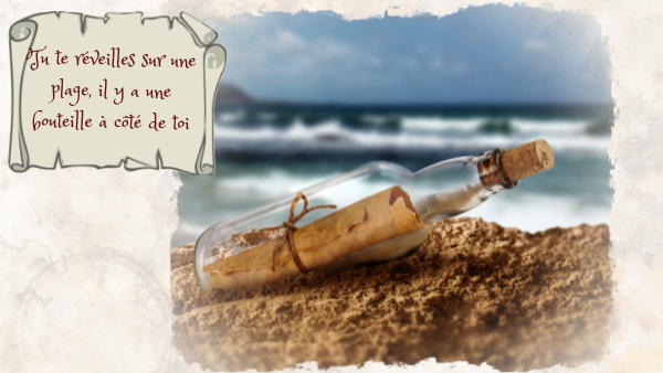 Tu te réveilles sur une plage, il y a une bouteille à côté de toi