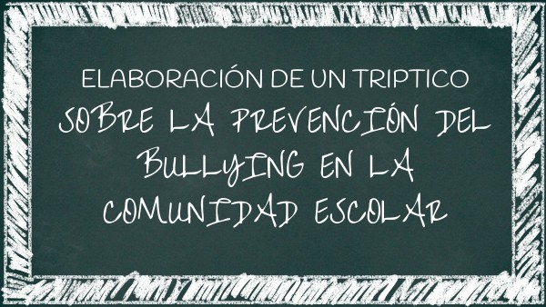 • Se le proporcionara dos hojas blancas a cada equipo • Los alumnos comenzarán a elaborar el borrador de su tríptico, en cual deberán de incluir los siguientes elementos: - Llevará por título “El bullying en la comunidad escolar” - Definir que es el bullying - Los tipos de bullying - Acciones de cómo prevenir el bullying - Si es que los alumnos consideran que es necesario, estos podrán colocar otra información relevante. - Fuentes de consulta - Las imágenes solicitadas servirán para ilustrar el tríptico. • Se revisará el trabajo por el docente y los alumnos, para esto los equipos deberán de intercambiar sus trípticos y realizar sugerencias para llevar a cabo una mejora en la producción final.
