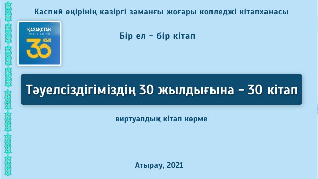 Виртуалдық кітап көрме "Тәуелсіздігіміздің 30 жылдығына - 30 кітап"