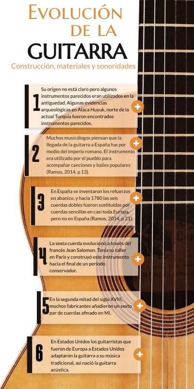 En España se inventaron los refuerzos en abanico, y hacia 1780 las seis cuerdas dobles fueron sustituidas por cuerdas sencillas en casi toda Europa, pero no en España (Ramos, 2014, p 21).
