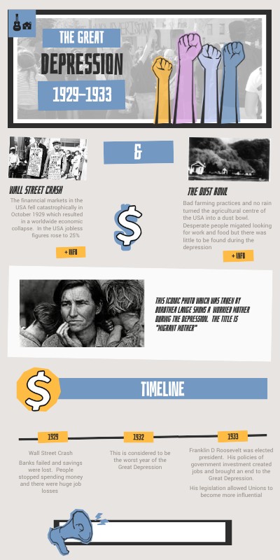 Bad farming practices and no rain turned the agricultural centre of the USA into a dust bowl. Desperate people migated looking for work and food but there was little to be found during the depression