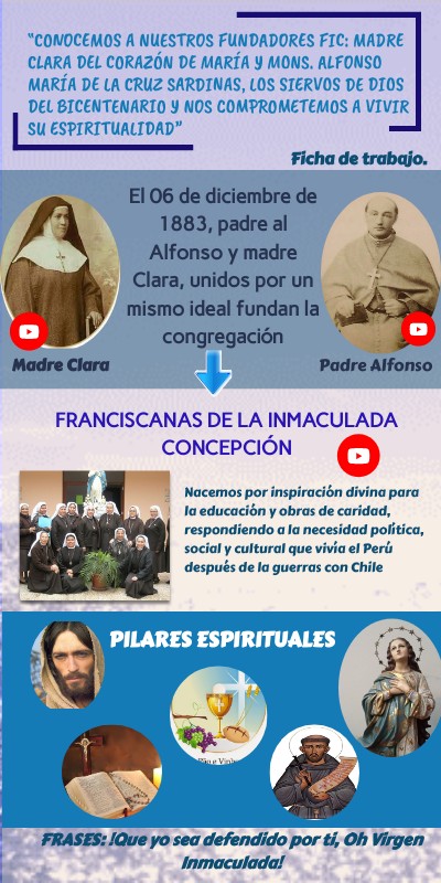 “Conocemos a Nuestros Fundadores FIC: Madre Clara del Corazón de María y Mons. Alfonso María de la Cruz Sardinas, los siervos de Dios del Bicentenario y nos comprometemos a vivir su espiritualidad”
