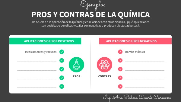 De acuerdo a la aplicación de la Química y en relaciones con otras ciencias, ¿qué aplicaciones son positivas o beneficas y cuáles son negativas o producen efectos adversos?.