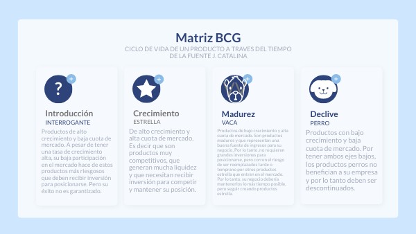 Productos de alto crecimiento y baja cuota de mercado. A pesar de tener una tasa de crecimiento alta, su baja participación en el mercado hace de estos productos más riesgosos que deben recibir inversión para posicionarse. Pero su éxito no es garantizado.