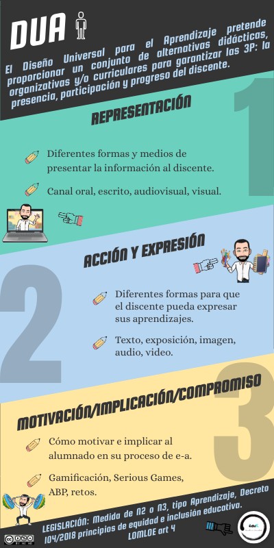 El Diseño Universal para el Aprendizaje pretende proporcionar un conjunto de alternativas didácticas, organizativas y/o curriculares para garantizar las 3P: la presencia, participación y progreso del discente.