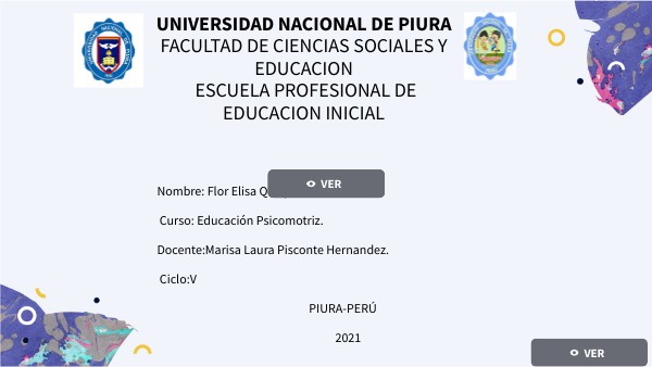 Nombre: Flor Elisa Quispe García. Curso: Educación Psicomotriz. Docente:Marisa Laura Pisconte Hernandez. Ciclo:V PIURA-PERÚ 2021