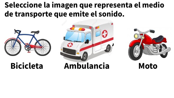 Seleccione la imagen que representa el medio de transporte que emite el sonido.