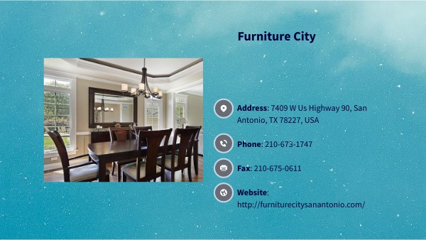 Address: 7409 W Us Highway 90, San Antonio, TX 78227, USAPhone: 210-673-1747 Fax: 210-675-0611 Website: http://furniturecitysanantonio.com/