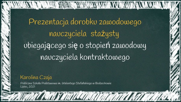 Prezentacja dorobku zawodowego nauczycielastażysty ubiegającego się o stopień zawodowy nauczyciela kontraktowego