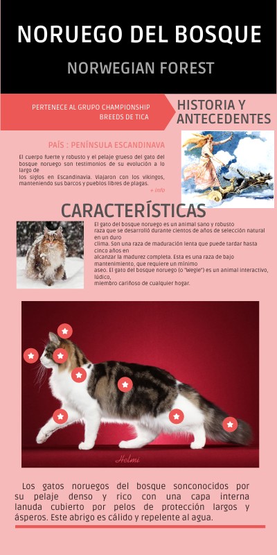 El cuerpo fuerte y robusto y el pelaje grueso del gato del bosque noruego son testimonios de su evolución a lo largo de los siglos en Escandinavia. Viajaron con los vikingos, manteniendo sus barcos y pueblos libres de plagas.