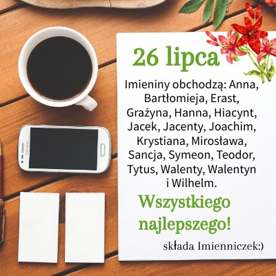 Imieniny obchodzą: Anna, Bartłomieja, Erast, Grażyna, Hanna, Hiacynt, Jacek, Jacenty, Joachim, Krystiana, Mirosława, Sancja, Symeon, Teodor, Tytus, Walenty, Walentyn i Wilhelm.