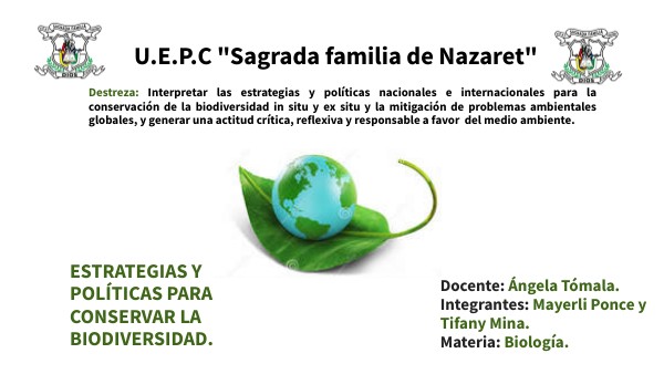 Destreza: Interpretar las estrategias y políticas nacionales e internacionales para la conservación de la biodiversidad in situ y ex situ y la mitigación de problemas ambientales globales, y generar una actitud crítica, reflexiva y responsable a favor del medio ambiente.