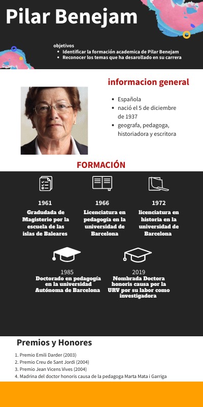 Pilar Benejam es conocida por su ardua labor en tratar de mejorar la manera en que las ciencias sociales son enseñadas, tanto en educacion básica como en educacion superior. Mediante gran cantidad de investigaciones y publicaciones ha dedicado su vida a encontrar metodos que se adapten a las necesidades no solo de los estudiantes sino también de los profesores.
