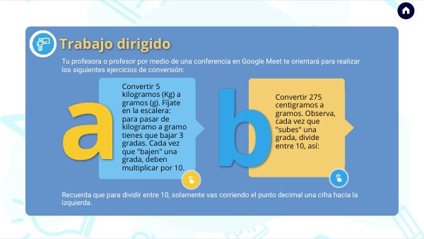 Tu profesora o profesor por medio de una conferencia en Google Meet te orientará para realizar los siguientes ejercicios de conversión:
