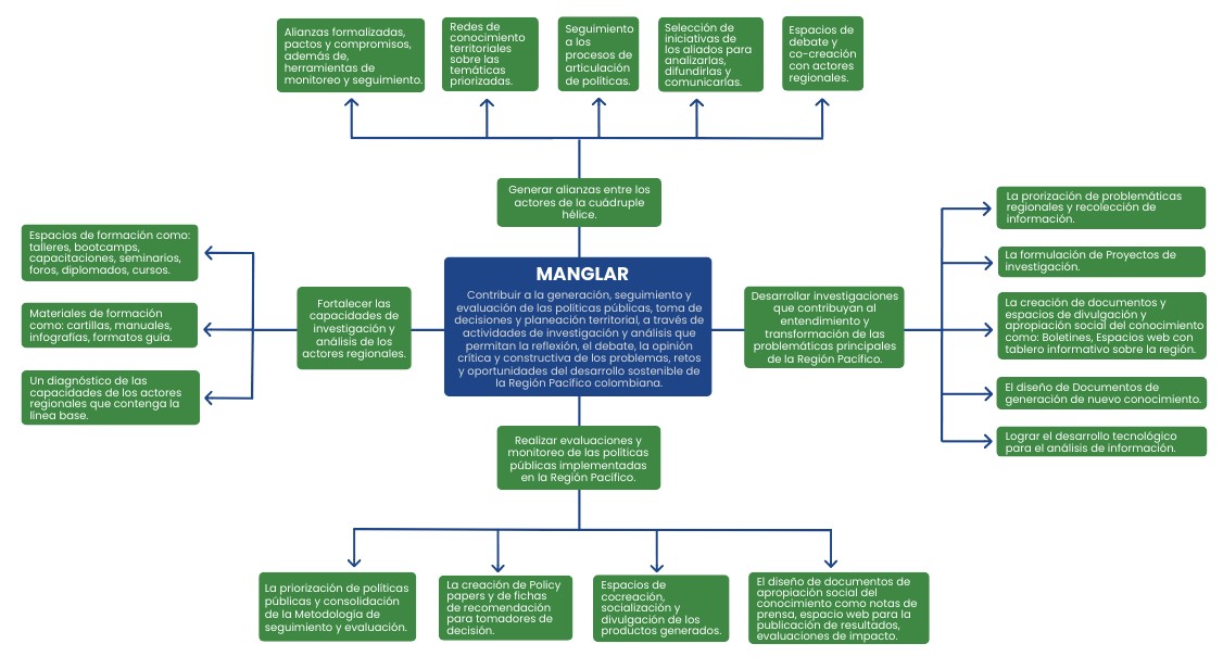 Contribuir a la generación, seguimiento y evaluación de las políticas públicas, toma de decisiones y planeación territorial, a través de actividades de investigación y análisis que permitan la reflexión, el debate, la opinión crítica y constructiva de los problemas, retos y oportunidades del desarrollo sostenible de la Región Pacífico colombiana.