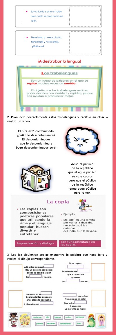 2. Pronuncia correctamente estos trabalenguas y recítalo en clase o realiza un video.