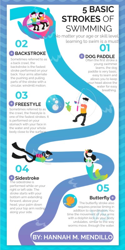 Often the first stroke a young swimmer learns, the dog paddle is very basic, easy to learn and allows you to keep your head above the water for easy breathing.