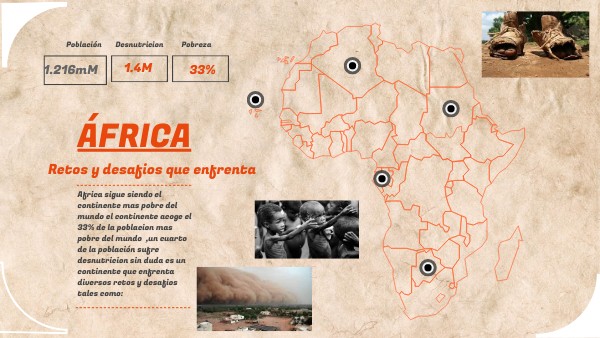 Africa sigue siendo el continente mas pobre del mundo el continente acoge el 33% de la poblacion mas pobre del mundo ,un cuarto de la población sufre desnutricion sin duda es un continente que enfrenta diversos retos y desafios tales como: