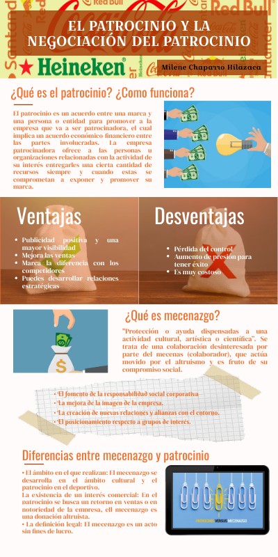 El patrocinio es un acuerdo entre una marca y una persona o entidad para promover a la empresa que va a ser patrocinadora, el cual implica un acuerdo económico-financiero entre las partes involucradas. La empresa patrocinadora ofrece a las personas u organizaciones relacionadas con la actividad de su interés entregarles una cierta cantidad de recursos siempre y cuando estas se comprometan a exponer y promover su marca.