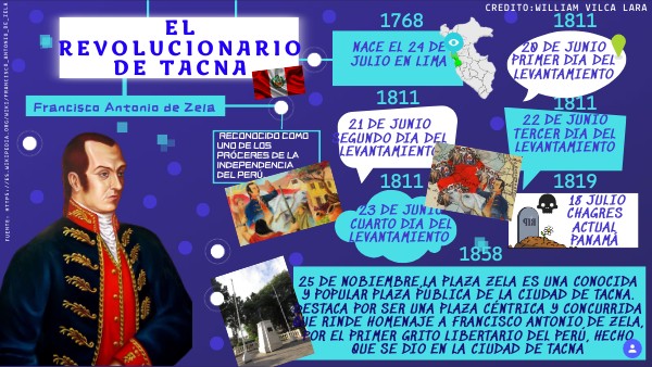 25 de nobiembre,La Plaza Zela es una conocida y popular plaza pública de la Ciudad de Tacna. Destaca por ser una plaza céntrica y concurrida que rinde homenaje a Francisco Antonio de Zela, por el primer grito libertario del Perú, hecho que se dio en la ciudad de Tacna