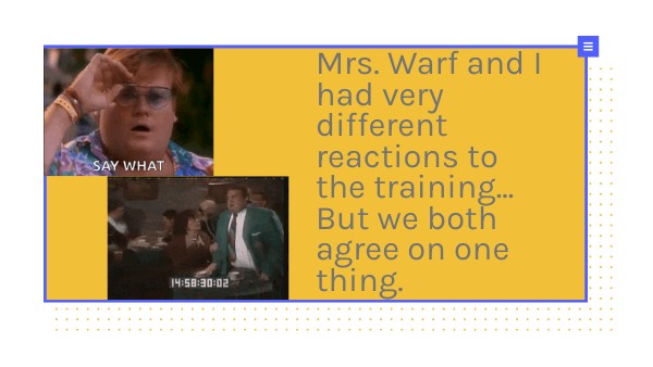 Mrs. Warf and I had very different reactions to the training...But we both agree on one thing.