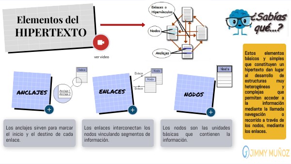 Estos elementos básicos y simples que constituyen un hipertexto dan lugar al desarrollo de estructuras muy heterogéneas y complejas que permiten acceder a la información mediante la llamada navegación o recorrido a través de los nodos, mediante los enlaces.