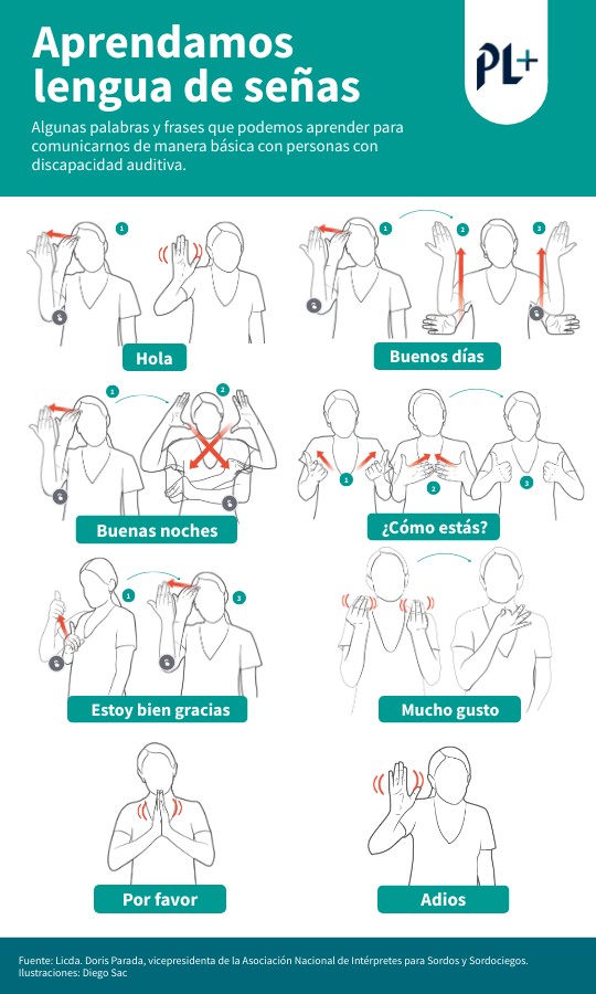 Fuente: Licda. Doris Parada, vicepresidenta de la Asociación Nacional de Intérpretes para Sordos y Sordociegos. Ilustraciones: Diego Sac