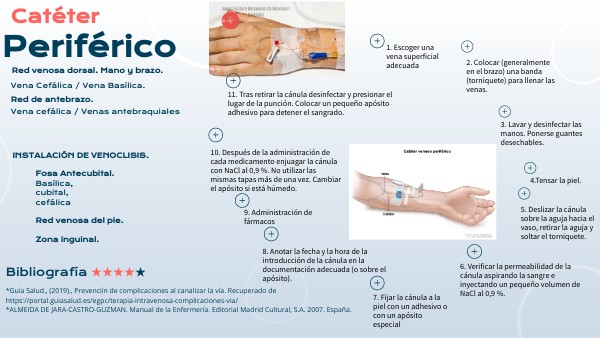 *Guía Salud., (2019)., Prevenciín de complicaciones al canalizar la vía. Recuperado de https://portal.guiasalud.es/egpc/terapia-intravenosa-complicaciones-via/*ALMEIDA DE JARA-CASTRO-GUZMAN. Manual de la Enfermería. Editorial Madrid Cultural, S.A. 2007. España.