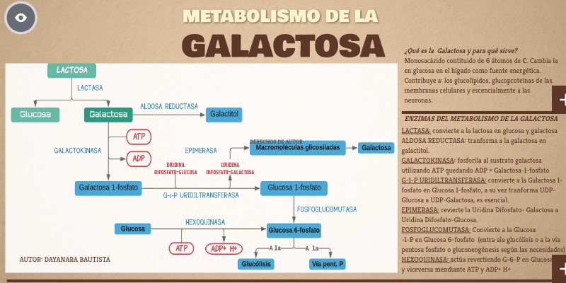 ¿Qué es la Galactosa y para qué sirve?Monosacárido contituido de 6 átomos de C. Cambia la en glucosa en el hígado como fuente energética. Contribuye a: los glucolípidos, glucoproteínas de las membranas celulares y escencialmente a las neuronas.