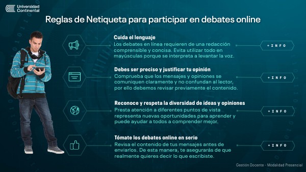 Los debates en línea requieren de una redacción comprensible y concisa. Evita utilizar todo en mayúsculas porque se interpreta a levantar la voz.
