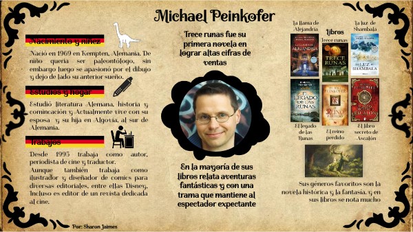 Sus géneros favoritos son la novela histórica y la fantasía. y en sus libros se nota mucho