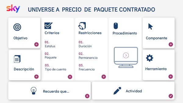 Selecciona 1 característica que debe tener la cuenta para ofrecer el beneficio de “Universe a precio de paquete Contratado”