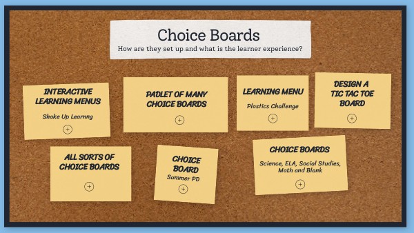 Padlet of many Choice Boards