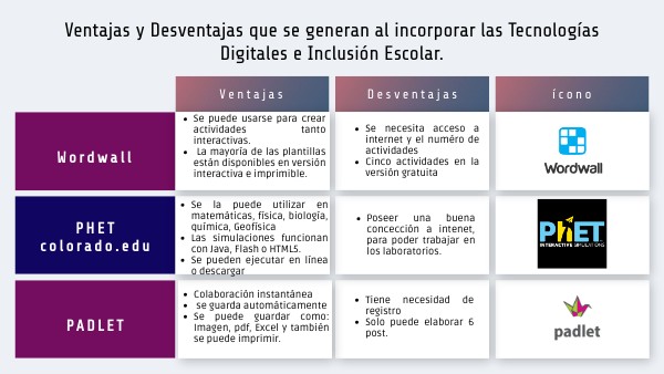 Ventajas y Desventajas que se generan al incorporar las Tecnologías Digitales e Inclusión Escolar.