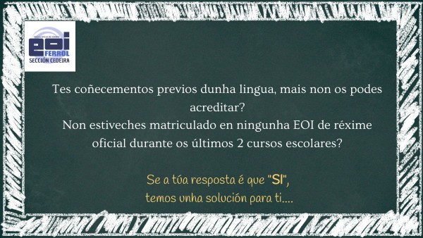 Tes coñecementos previos dunha lingua, mais non os podes acreditar?Non estiveches matriculado en ningunha EOI de réxime oficial durante os últimos 2 cursos escolares?
