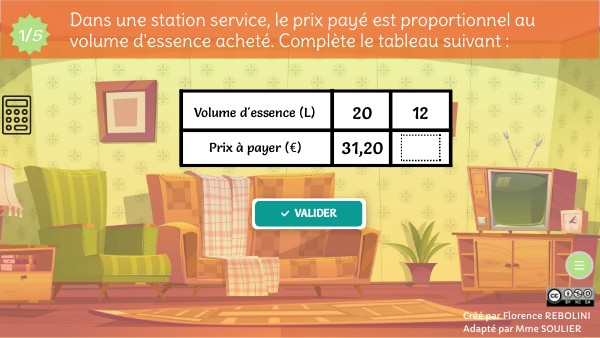 Dans une station service, le prix payé est proportionnel au volume d'essence acheté. Complète le tableau suivant :