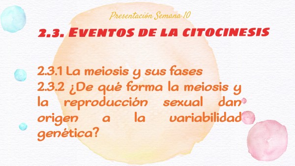 2.3.1 La meiosis y sus fases 2.3.2 ¿De qué forma la meiosis y la reproducción sexual dan origen a la variabilidad genética?