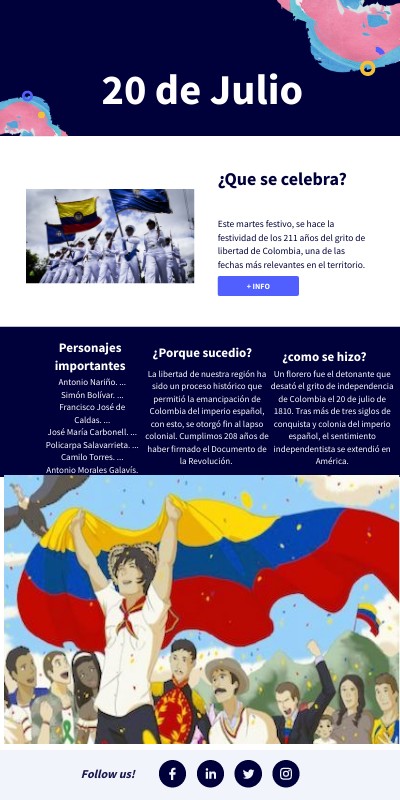 Este martes festivo, se hace la festividad de los 211 años del grito de libertad de Colombia, una de las fechas más relevantes en el territorio.