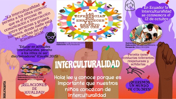 "La interculturalidad permite a los niños conocer que es el proceso de comunicación e interracción entre personas y grupos humanos, donde nadie está por encima del otro" (Cavalié,2013).