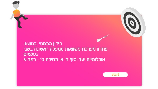 :חידון מתמטי בנושא פתרון מערכת משוואות ממעלה ראשונה בשני נעלמים אוכלוסיית יעד: סוף ח' או תחילת ט' - רמה א