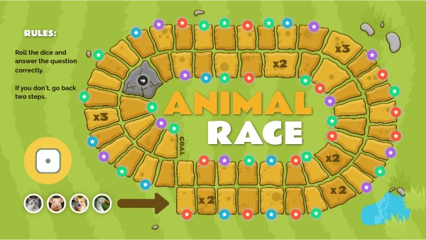 Roll the dice and answer the question correctly. If you don't, go back two steps.