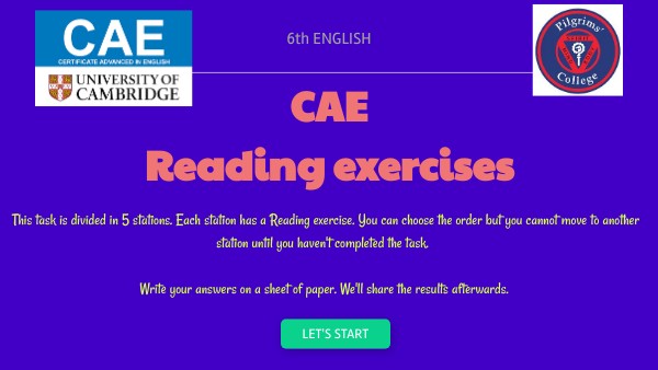 This task is divided in 5 stations. Each station has a Reading exercise. You can choose the order but you cannot move to another station until you haven't completed the task. Write your answers on a sheet of paper. We'll share the results afterwards.