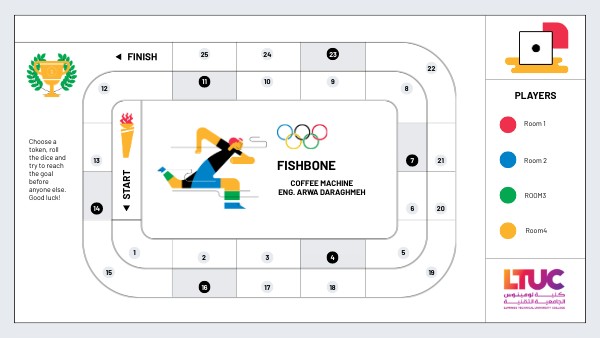 Choose a token, roll the dice and try to reach the goal before anyone else. Good luck!