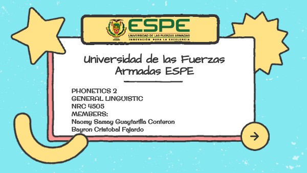 PHONETICS 2 GENERAL LINGUISTIC NRC 4505 MEMBERS: Naomy Samay Guaytarilla Conteron Bayron Cristobal Fajardo