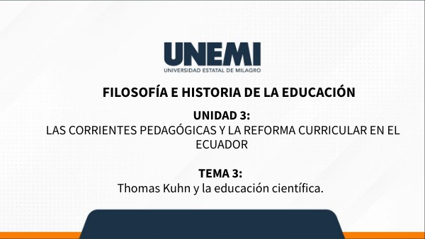 UNIDAD 3: LAS CORRIENTES PEDAGÓGICAS Y LA REFORMA CURRICULAR EN EL ECUADOR TEMA 3: Thomas Kuhn y la educación científica.